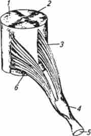 / - біла речовина; 2 сіра речовина; J - передній корінець; 4 спинальний ганглій; 5-змішаний нерв; б-задній корінець кін на аферентні і еферентні. Роздратування центрального відрізка будь-якого заднього спинномозкового корінця викликає сильну больову реакцію, а роздратування його периферичного відділу не супроводжується відповідною рухової реакцією. Роздратування ж центральної ділянки переднього корінця, навпаки, не супроводжується реакцією, а роздратування його периферичного відрізка завжди викликає скорочення певних м'язів. Перерезка задніх корінців веде до втрати чутливості, а перерезка передніх корінців викликає параліч мускулатури.