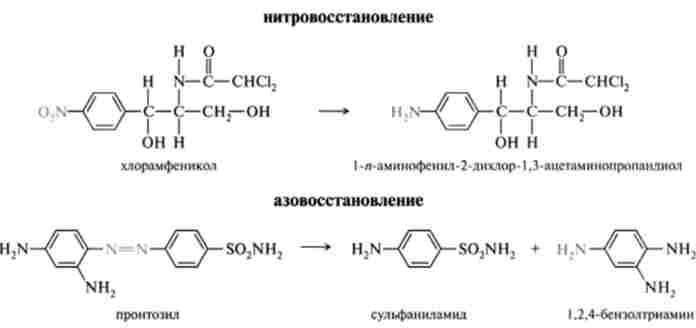 Реакції відновлення в ЕПР протікають за участю НАДФН-залежного флавопротеїнів і цитохрому Р-450. Найбільш часто зустрічається відновлення нітро- і азосоединений: