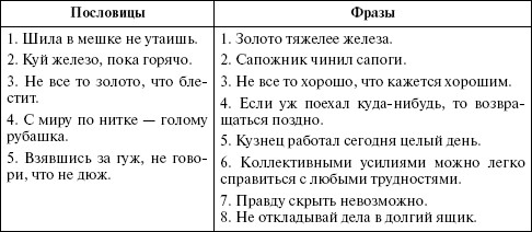 опитуванням про особливості мислення при моторної алалії на пізніх етапах Одним із складних питань у вивченні проблеми алалії є співвідношення мови і інтелекту в плані виявлення впливу недорозвинення мови на формування пізнавальної діяльності. Дане питання до теперішнього часу не отримав задовільного рішення. А. Лібман (1901), М. В. Богданов-Березовський (1909), Г. Джексон (1932), Л. П. Голубєва (1947), М. Земан (1962), Р. А. Бєлова-Давид (1972) та інші пов'язують відсутність мовлення з більш-менш вираженою розумовою відсталістю, яка відіграє чільну роль. Дослідники, які дотримуються протилежної точки зору, підкреслюють залежність виникнення інтелектуальної затримки від мовного розвитку (Р. Брока (1861), Дж. Дежерин (1914), Н. Н. Трауготт (1940, 1959), М. Б. Ейдінова (1951), Р. Є. Левіна (1951), В. К. Орфінская (1967), С. С. Ляпидевский (1969, 1973), Г. В. Мацієвська (1964, 1967), Н. І. Жинкін (1969, 1972) , Є. М. Мастюкова (1971), Є. І. Кириченко (1970), Н. М. Уманська (1973) та інші). Причому автори відзначають, що ці порушення, що нагадують олигофрению, відрізняються меншою ступенем інтелектуальної недостатності, відсутністю вираженої тотальності. Це вторинне явище, менш важке, ніж олігофренія. Повноцінне мислення (здатне до виконання всіх логічних операцій) з'являється лише в процесі вдосконалення мови: після утворення граматичних умінь і навичок. Таким чином, єдиної думки з даного питання серед дослідників немає. Для уточнення цієї проблеми ми катамнестичних обстежили 138 випускників і старшокласників, які страждають моторної алалією. При вивченні процесу мислення нас цікавило розуміння переносного значення метафор, прислів'їв, пропонувалися завдання по співвідношення фраз до прислів'їв, що розкриває їх зміст. На думку А. Р. Лурія, «саме в розумінні переносного сенсу випробовуваний повинен вийти за межі простої читача функції мови і перейти до того прихованого змісту, який те чи інше вираження може придбати в відомої ситуації». Також нас цікавило процес формування понять, куди входили завдання з виділення істотних ознак, виключенню понять, прості аналогії. Усім обстеженим при надходженні в спеціальні мовні школи був поставлений діагноз «моторна алалія». За даними медико-педагогічних характеристик у 42 дітей відзначався I рівень мовного розвитку, у 96 - II рівень мовного розвитку (за Р. Є. Льовиній). 44 учням дано висновок про затримку інтелектуального розвитку. У результаті проведеного дослідження були отримані наступні дані. 1. Обстежуваним були запропоновані метафори (золота голова, кам'яне серце, залізна рука, ліс співає та ін.); прислів'я: «Куй залізо, поки гаряче»; «Взявшись за гуж, не кажи, що не дуж»; «Не в свої сани не сідай »;« Курчат по осені рахують »та ін З протоколів: Таблиця З 138 осіб тільки 15 не зрозуміли сенсу прислів'я: «Курчат по осені рахують», відмовившись відповідати . Решта запропонованих прислів'я розбиралися правильно. В основі проявилися особливостей лежать недоліки чіткого відбору слів, вибору їх значення. 2. Завдання на співвідношення фраз до прислів'їв. Ми запропонували 5 прислів'їв і 8 фраз, які розкривають їх зміст. Піддослідні мали підібрати до кожної прислів'ю необхідну фразу. Виконуючи завдання необхідно відволіктися від конкретного значення слів у реченні, абстрагуватися від прямого сенсу. Таблиця З 138 людина це завдання повністю правильно виконали 34, що складає 25%. Решта 104 допус