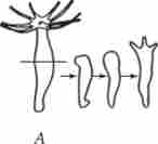 При епіморфной регенерації не завжди утворюється точна копія віддаленої структури. Таку регенерацію називають атипової. Регенерація з частковим заміщенням ампутованою структури - гіпоморфоз. Так, у дорослої шпорцевой жаби виникає шипоподібному структура замість кінцівки. Гетероморфоз - поява іншої структури на місці втраченої. Це може проявлятися у вигляді гомеозісной регенерації, що полягає в появі кінцівки на місці антен або очі у членистоногих, а також у зміні полярності структури. З короткого фрагмента пла- наріі можна стабільно отримувати біполярну планарию (рис. 8.30).