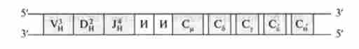 Спочатку з 5'-сторони віддаляються послідовності ДНК, в яких локалізовані ланцюга См, З6 і Су і утворюється функціонально активний фрагмент.