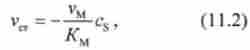 З виразу (11.3) випливає, що при великих концентраціях субстрату швидкість досягає максимального значення vM і не залежить від величини з $. Відповідно ділянку графіка рис. 11.2 при великих значеннях з являє собою пряму, паралельну осі абсцис.