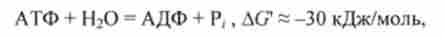 де АТФ, АДФ - аденозілтрі- і аденозілдіфосфат, Р / - фосфат (неорганічний фосфор), ДО "- енергія Гіббса реакції при фізіологічних умовах.