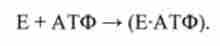 АТФ - це субстрат ферменту Е. Субстрат надходить в активний центр (ключ в замок, див. рис. 8.13), в якому гідролізується. Енергія Гіббса даної реакції при стандартних біологічних умовах становить приблизно -30 кДж / моль.