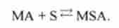В результаті реакції утворюється міозин-субстратної комплекс MS. Ця реакція оборотна: можливий процес, що протікає в зворотному напрямку. Міозін- субстратної комплекс може розпадатися (про це нагадує подвійна стрілка в першому стовпці табл. 13.1). Тут константа швидкості прямої реакції (перехід I -> 2) позначена <Х|2, константа скорости обратной реакции (переход 2 ->) - <хг|.