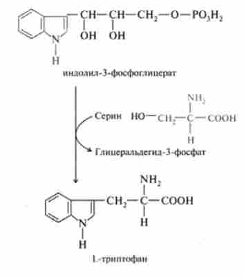 6. Синтез триптофану з индолил-3-гліцерофосфату і серину: