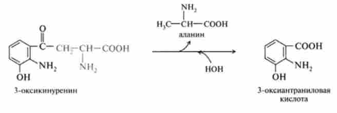 8. Синтез з триптофану нікотинової кислоти на стадії гідролізу 3-ок сікінуреніна на аланін і 3-оксіантраніловую кислоту: