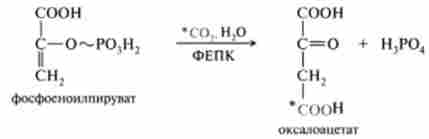 1. Карбоксилювання фосфоеноілпірувата в мезофільних клітинах листа каталізується ферментом фосфоеноілпіруваткарбоксілазой (ФЕПК), який відсутній в тварин тканинах: