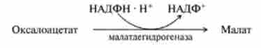 2. Відновлення оксалоацетата НАДФН-залежної малатдегідрогена- зой з утворенням малата. Хімізм цієї реакції наведено в гл. 20:
