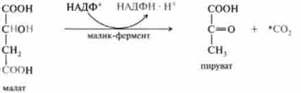 3. Декарбоксилирование малата під дією малик-ферменту до піру- вата і С02: