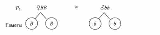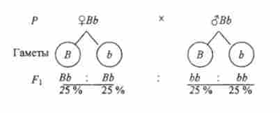 Для визначення фенотипів гібридів другого покоління слід знати гамети гібридних рослин першого покоління. гібридні рослини F (Bb) продукують гамети двох типів -Bub. При вільної зустрічі чоловічих і жіночих гамет утворюються різні зиготи, а отже, і різні фенотипічні класи в потомстві (продовжуємо схему):