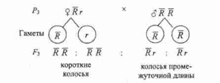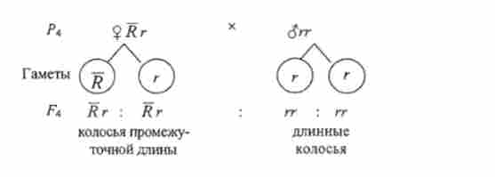 4. Від аналізує схрещування гібридних рослин Rr з длінноколосой батьківською формою утворюються також два фенотипичних класу, але з колоссям проміжної довжини і довгими:
