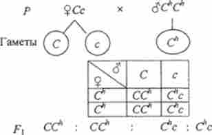 Кролика із суцільною пігментацією шерсті, гетерозиготних по гену альбінізму, схрещують з гомозиготною гімалайським кроликом. Які генотип і фенотип матимуть нащадки (.F]) Від цього схрещування?