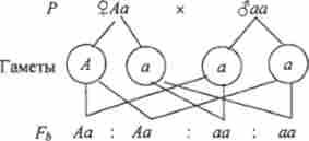 При схрещуванні гібридів з рецесивною батьківською формою в потомстві відбувається розщеплення ознак наполовину (1: 1):