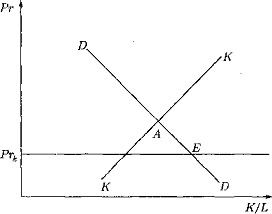 Формаційний підхід до вивчення соціальної еволюції створює ілюзію односпрямованого («прогресивного») розвитку суспільства. Насправді соціальна еволюція альтернативна, і однією з її можливих альтернатив є стаціонарні стану суспільства. Для таких станів справедливо (див. п. 1.3) інформаційне рівність означає припинення еволюції. Рівність (1), однак, не є вичерпною характеристикою стаціонарних станів. Істотний інтерес представляє також конкретне розгляд соціоекономічних умов, що ведуть до виникнення стаціонарних станів у суспільстві. Ідея та інструментарій такого розгляду належать Д. Рікардо. На рис. 2 зображена спрощена модель Рікардо. Тут К - капітан, L - праця, Рг - середній прибуток на одиницю використовуваного капіталу, У - сукупний дохід. Приймається спрощує припущення, згідно з яким L - const. Додаткові припущення: прибуток на капітал усредняется; якість (ефективність) капіталу, яке визначається використовуваною технологією, змінюється дуже повільно; кількість капіталу може збільшуватися тільки за рахунок внутрішніх заощаджень; діє закон падіння граничної ефективності капіталу. Рис. 2 Лінія DD являє собою графік попиту на капітал. Вона має характерний нахил вправо і вниз, оскільки при L = const збільшення накопичення капіталу при незмінній технологічній базі зменшує прибутковість кожної наступної одиниці капіталу. Лінія К К є графік пропозиції капіталу. Вона має характерний нахил вправо і вгору, оскільки пропозиція капіталу зростає із збільшенням прибутку. Збільшення пропозиції капіталу змішає графік К К вправо, збільшення ефективності капіталу зміщує вправо графік ОВ. Точка А перетину графіків В В і К К визначає рівноважний стан економіки. Якщо кількість використовуваного капіталу зростає, а його ефективність не змінюється, то стан рівноваги А ковзає вниз вздовж графіка ВВ. Рух вниз триває доти, поки прибуток на капітал більше критично малої величини Рг%. У цьому випадку чисті заощадження членів суспільства позитивні. При Рг = Рг1с вони рівні нулю, а при Рг lt; РГК стають негативними. Тому при будь-якому значенні Рг gt; Рг ^ обсяг використовуваного капіталу і сукупний дохід збільшуються, але темп їх зростання падає зі зменшенням прибутковості. У точці Е виникає рівність Рг = РГК, яке свідчить про припинення можливості заощаджувати. Це робить неможливим подальше накопичення капіталу. Економічне зростання припиняється. Економіка і суспільство переходять в стаціонарний стан, в якому капітал і сукупний дохід незмінні. Ідея неминучості такого стану була широко поширена в XIX в. Згідно Д. Миллю, перехід в стаціонарний стан може стати бажаним, якщо обсяг використовуваного капіталу виявиться досить великим. Відзначимо, що при зроблених припущеннях стаціонарний стан стійко. Єдиною силою, здатною вивести суспільство зі стаціонарного стану, є зростання ефективності капіталу. Однак відсутність прибутку в стаціонарному стані і неможливість задіяти зростаюча кількість релевантної інформації в силу рівності (1) робить неможливим підвищення ефективності капіталу. Лише зовнішній приплив капіталу (або руйнування капіталу в результаті стихійних лих: землетрус, неврожай, повінь і т. п.) здатний змусити таке суспільство знову функціонувати в нестаціонарному режимі. Аналіз схеми Рікардо показує також, що стаціонарний стан є граничним станом 
