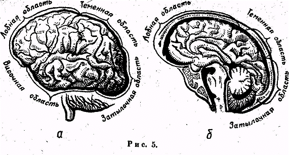 Психіка є властивість високоорганізованої матерії-нервової системи. У людини носієм психіки є головний мозок. Нервова система здійснює дві найважливіші функції: зв'язок людини з навколишнім світом і узгодження, координацію роботи всіх частин організму, управління ним. Всі явища людської психіки виникають, формуються і розвиваються в процесі діяльності мозку, що відображає навколишню дійсність. Інакше кажучи, вища нервова діяльність - фізіологічна основа психіки. Ось чому для розуміння різноманітних проявів психічного життя потрібно бути знайомими з будовою і основними законами діяльності нервової системи. Нервова система людини відрізняється дуже великою складністю. Основний її елемент - нервова клітина - нейрон. Еволюція нервової системи йшла шляхом концентрації нервових клітин в нервові вузли, з яких поступово виділився складніший - головний. Малюнок Нейрон, як це видно з рис. 3, являє собою власне нервову клітину з відхідним від неї безліччю деревовидно розгалужених відростків (дендритів) і одним довгим відростком-нервовим волокном, від якого також йдуть відгалуження. Тіло нейрона мікроскопічної величини (в середньому 0,03 мм), але нервове волокно може бути різної довжини - до декількох десятків сантиметрів. У нейронах виникає процес збудження. В основі збудження лежить особливий нервовий струм (біострум), який відрізняється від електричного. Нервове збудження поширюється зі швидкістю до 120 м в секунду. Але для людського тіла це цілком достатня швидкість - адже нервового збудження треба пройти відстань не більше 1,5-2 м. Нервові волокна покриті білою Жироподібні мієлінової оболонкою з властивостями ізолятора. Ця оболонка відіграє дуже важливу роль, так як забезпечує про ведення збудження в певному напрямку (без неї процес порушення безладно поширювався б на всі боки).Окремі нейрони з'єднуються один з одним за допомогою особливих контактних механізмів, які називаються синапсами («синапс» - від грецького слова «застібка»), які в безлічі покривають нейрон. За допомогою синапсів здійснюється пере хід збудження від однієї нервової клітини до іншої. Скупчення нервових волокон із загальною сполучної оболонкою називаються нервами. Скупчення тіл нервових клітин разом з дендритами складають сіра речовина головного і спинного мозку; скупчення нервових волокон-білу речовину. Роль сірого мозкової речовини полягає в нагромадженні, посиленні та переробці збудження; роль білої речовини - у передачі збудження від одних нервових клітин до інших. Нерви проводять порушення тільки в одному напрямку - від різних частин тіла до мозку (доцентрові нерви) або, навпаки, від мозку до різних частин тіла (відцентрові нерви). Розрізняють центральну і периферичну нервову систему (рис. 4). Периферична нервова система являє собою сукупність нервових волокон, що здійснюють зв'язок центральної нервової системи з різними частинами тіла і внутрішніми органами. Центральна нервова система складається зі спинного та головного мозку. Спинний мозок розташований усередині хребетного стовпа і являє собою товстий шнур, що складається з нервової тканини. Поперечний розріз спинного мозку показує, що по краях його знаходиться біла речовина, а всередині - сіра речовина. У спинному мозку розташовані центри цілого ряду вроджених безумовних рефлексів. Він рег