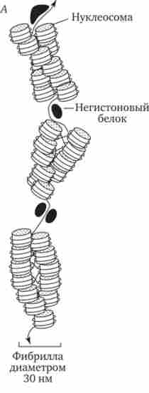 А - хроматиновой фібрила з приєднаними до неї негістонових білками;
