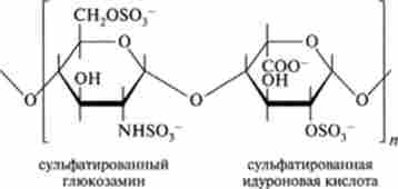 Основний повторюваної одиницею в молекулах гепарину служить, ймовірно, зображений нижче дисахарид (хоча крім показаних присутні і інші зв'язку).