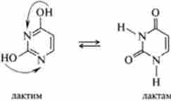 Перераховані пуринові і піримідинові підстави містять пов'язану систему кратних зв'язків і заступники (групи - ОН і -NH2). Зазначені структурні особливості обумовлюють здатність пуринових і піримідинових основ до різних типів таутомерних перетворень: лакто-лактімномудля оксіпроізводних і амін-імінну для Амінопохідні. На прикладі урацила таутомерні перетворення урацила можна представити в наступному вигляді: