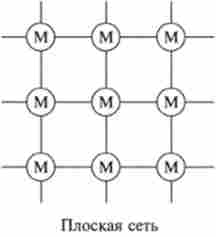 Сітчасті {зшиті) полімери, наприклад гуми (вулканізований каучук). Це тривимірні полімери, ланки яких утворюють єдину хімічно пов'язану просторову сітку: