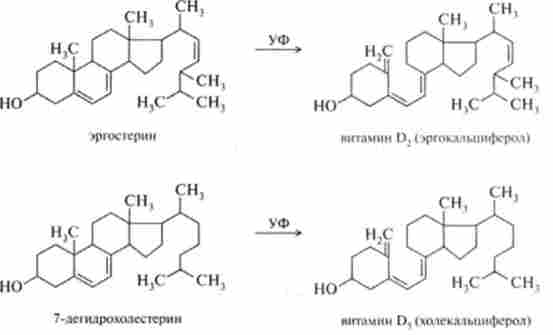 Еше в XVII столітті було відомо, що дитяче захворювання рахіт виліковується деякими продуктами харчування, зокрема риб'ячим жиром. Пізніше вчені виявили вплив сонячного світла на це захворювання. У I924 р було сформульовано висновок про те, що в їжі під дією ультрафіолетового опромінення відбувається активація якихось антірахітіче- ських чинників. Суміші цих речовин були виділені і ідентифіковані як стерини. І нарешті, в 1932 р А. Віндаус після опромінення ергостерину з дріжджів отримав індивідуальне речовина, що володіє антирахітичним дією і назване ергокальциферолом або вітаміном D2. Чотири роки по тому з риб'ячого жиру був виділений препарат, названий вітаміном D3, причому попередником його є не ергостерину, а холестерин.