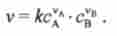 Тут v - швидкість реакції; зА, зв - концентрації реагентів А і В; до - коефіцієнт, що не залежить від концентрації реагуючих речовин, званий константою швидкості; vA і vB - постійні, не залежать від концентрації числа, звані показниками порядку реакції по реагентів А і В. Сума vA+vB = V називається сумарним (загальним) порядком реакції.