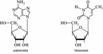 З'єднання азотистих основ з пентози називають нуклеозидами. Нуклеозиди, що виділяються з нуклеїнових кислот, є УУ-глікозиди. Нуклеозиди, що містять в якості вуглеводної частини D-рибозу, називають рибо нуклеозидами, а містять 2-дезокси-D-рибозу - дезоксирибонуклеозид. Методами периодатного окислення, спектрального та рентгеноструктурного аналізу доведено, що природні нуклеозиди утворюються за участю ^ -пірімідінових підстав, А ^ -пурінових підстав і мають 3-конфігурацію гликозидной зв'язку. Як приклад наведено структури нуклеозидов: