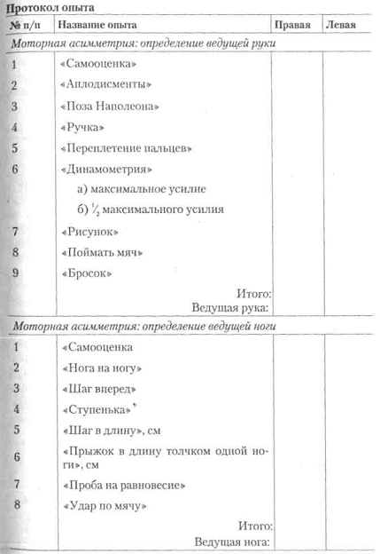 Завдання 1. Дослідження моторних асиметрій Вступні зауваження. Моторні асиметрії властиві всім людям |