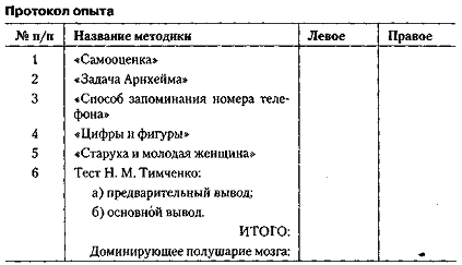 Інформація, релевантна " Завдання 3. Дослідження психічних асиметрій " |