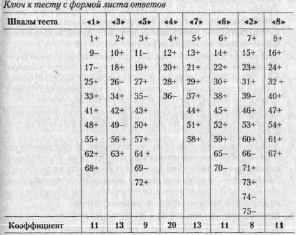 Індекси за підсумками тестування Індекс агресивності (ІА) = (2ФА +? ВА + ZKA) / 3, де: ЕФА - підсумкова сума балів за шкалою «1 »; ЕВА - підсумкова сума балів за шкалою« 2 »; 2кА - підсумкова сума балів за шкалою« 3 ». Індекс ворожості (ІВ) = (? Н +? Р + Еп + Х0) / 4, де: Ен - підсумкова сума балів за шкалою «4»; S р - підсумкова сума балів за шкалою «5»;? п - підсумкова сума балів за шкалою «6»; Х0 - підсумкова сума балів за шкалою «7». Інтерпретація отриманих даних 1. Фізична агресивність - використання фізичної сили проти іншої особи. 108 Розділ 2. Психологія особистості спортсмена і тренера 2. Вербальна агресивність - вираз негативних відчуттів як через форму словесного звернення (сварка, крик, вереск), так і через зміст словесних звернень до інших осіб (загроза, прокляття, лайка та ін.) 3. Непряма агресивність - використання обхідним шляхом спрямованих проти інших осіб пліток, поголоски, чуток, жартів і прояв ненапрямлених, невпорядкованих, але адресно спрямованих на інших осіб невербальних реакцій - гримаси, здавлені крики, тупання ногами, стискання щелеп і пр. 4. Негативізм - опозиційна форма поведінки як елемент прихованої ворожості, спрямована зазвичай проти якогось авторитету, керівника, організації, яка може наростати від пасивного опору до активних дій проти вимог, правил, законів, інструкцій, представників влади та пр. 5. Дратівливість - схильність до роздратування, готовність при найменшому порушенні вилитися у запальності, різкості, грубості в спілкуванні. 6. Підозрілість - схильність до недовіри і обережного ставлення до людей, що виникають з переконання, що оточуючі мають намір або потенційно можуть заподіяти шкоду. 7. Образливість - прояви заздрості й ненависті до оточуючих, обумовлені почуттям гніву, помсти, невдоволення кимсь або всім світом за дійсні або уявні страждання. 8. Почуття провини (аутоагресія) - вчинки і дії по відношенню до себе і оточуючих, що виникають з можливого переконання самого обстежуваного в тому, що він є поганою людиною, надходить недобре, на шкоду іншим людям, відчуває моральні страждання совісті за скоєні гріхи. Завершення роботи. Обговорити зі студентами (піддослідними) отримані дані. Звернути увагу на те, що опитувальник не вільний від мотиваційних спотворень (наприклад, у зв'язку з соціальною желательностью), вимагає додаткової перевірки на надійність отриманих результатів або за допомогою ретест, або за допомогою інших методик. Застосування даного опитувальника в роботі зі спортсменами, учнями шкіл (з шостого класу і вище), а також у роботі тренерів та вчителів (предметників і проходять підготовку за фахом «практичний психолог») було достатньо диагностич-ним і конструктивним для подальшої психокорекційної та виховної роботи . Тема 3. Характерологічні особливості особистості 109