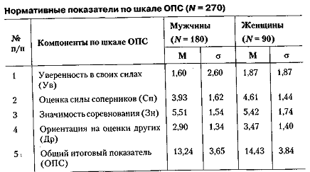 Примітка: М - середній показник по вибірці ; про - стандартне відхилення. Завершення роботи. Дослідження на різних вибірках спортсменів дозволило стандартизувати показники шкали ОПС. У таблиці (див. вище) представлені результати цієї стандартизації на вибірці 270 кваліфікованих спортсменів, опитаних за шкалою ОПС напередодні відповідальних змагань (див. таблицю вище) . Більш наочно ці результати виглядатимуть графічно після попереднього нормування по середньому квадратичному відхиленню.