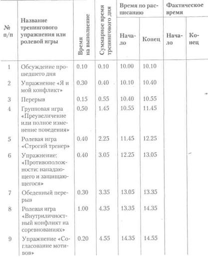 220 Розділ 4. Соціально-психологічне забезпечення Тема 3. Методи формування і вивчення командної згуртованості 221 Методичне вказівку. Крім тренінгово-ігрових вправ у СПТ і навчальних завдань в програму соціально-психологічного тренінгу можуть бути включені психодіагностичні методи. Це різного роду анкети і тести, спрямовані на вивчення особистісних якостей учасників тренінгу, на оцінку їхньої задоволеності своєю участю у тренінгу, на психологічну допомогу в усвідомленні учасниками СПТ своїх слабких і сильних сторін, що виявляються в конфліктній взаємодії. Завершення роботи. Запропонована програма СПТ для попередження та вирішення конфліктів у взаєминах спортсменів апробована на студентах-спортсменах СПбГАФК ім. П. Ф. Лесгаф-та, має спеціалізовану спрямованість і призначена для роботи з кваліфікованими спортсменами і тренерами, а також для підготовки молодих спортивних фахівців у фізкультурно-педагогічному вузі. Застосування даної програми СПТ в системі психологічної допомоги висококласним спортсменам, наприклад, в умовах УТС, допоможе їм ефективніше долати внутрішні труднощі міжособистісного спілкування з тренерами і один з одним, попереджати безліч конфліктних ситуацій, пов'язаних як з їх професійною спортивною діяльністю, так і з ситуаціями спілкування , що не мають прямого відношення до неї.