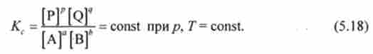 величину Доз називають константою рівноваги реакції аА + ? В = Р? + qQ. Співвідношення (5.17) є математичною записом закону діючих мас, який формулюється таким чином.