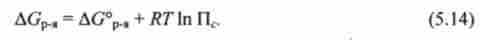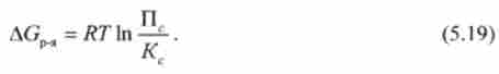 На основі виразу хімічних потенціалів (5.13) для реагентів і продуктів реакції через концентрації після алгебраїчних перетворень приходять до наступного виразу для енергії Гіббса даної реакції: