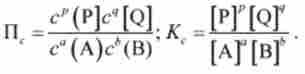 де А, В - реагенти; Р, Q - продукти; а, b4p, q- відповідні стехіометричні коефіцієнти.