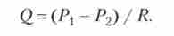 Кров рухається завдяки різниці тисків (АР) на початку судини (РД і в кінці судини (Р2). Руху крові протидіє опір судини (R). Обсяг крові, що протікає через поперечний переріз судини в одиницю часу, прямо пропорційний різниці тисків на початку і кінці судини і обернено пропорційний його опору. Цей основний закон гемодинаміки описується формулою