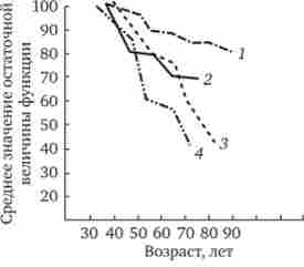 Мал. 8.32. Вікові зміни деяких життєво важливих функцій людини.